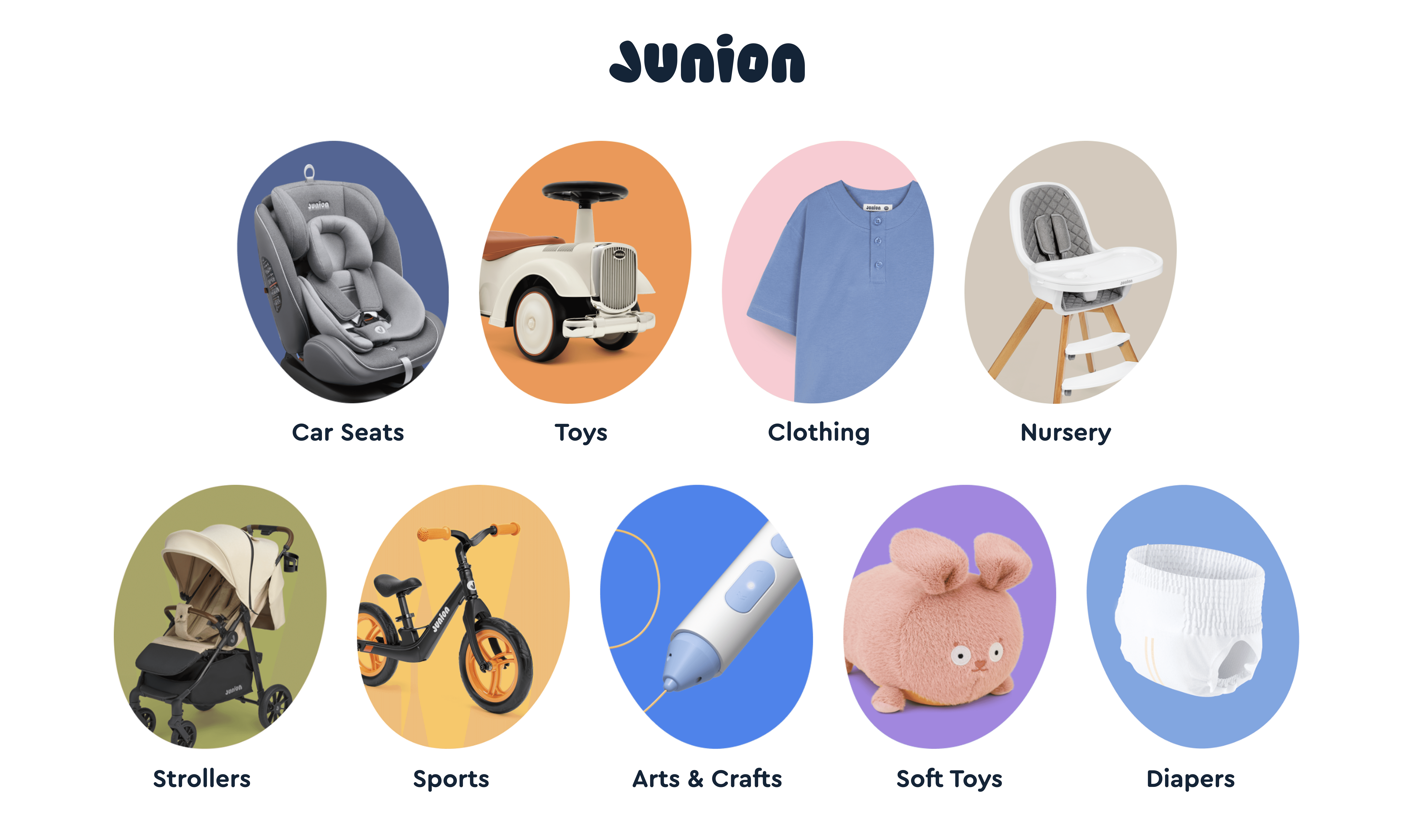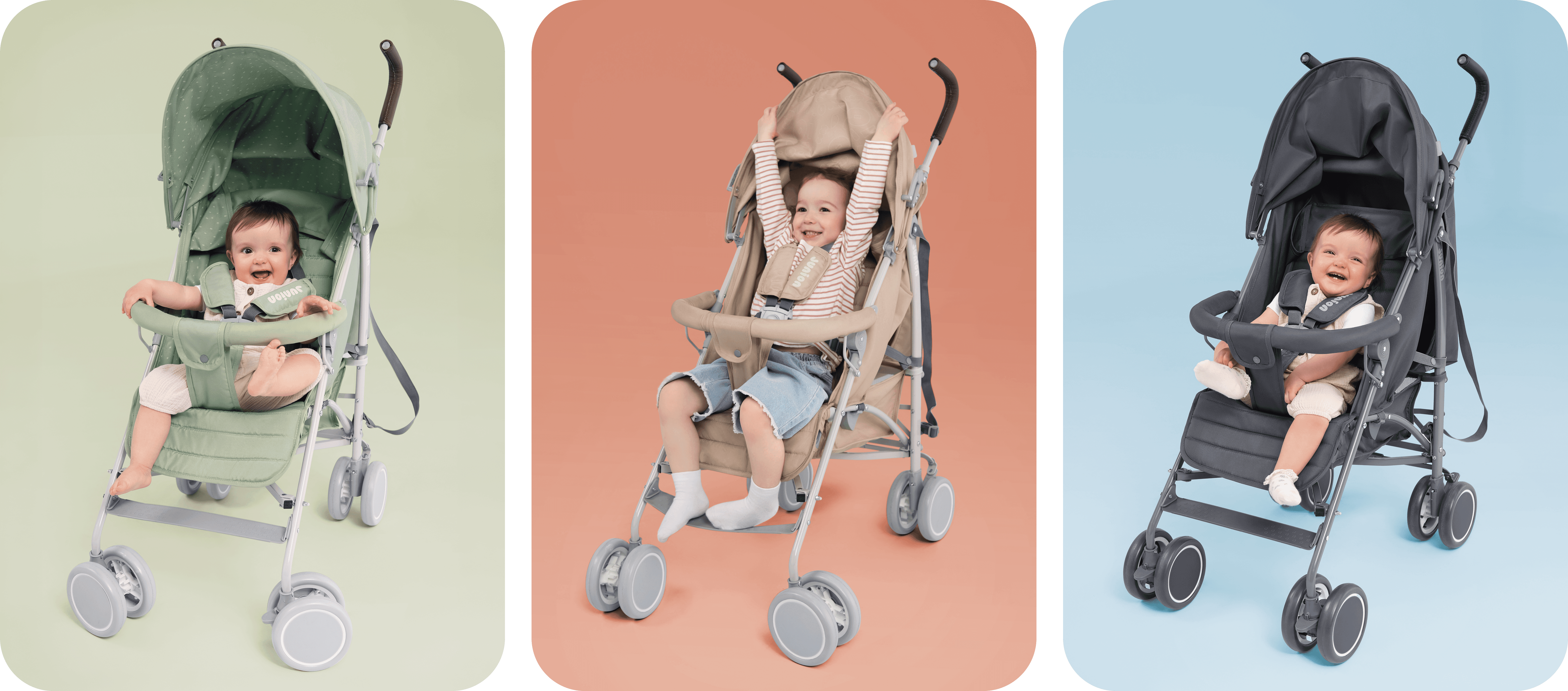 Junion is a kids and family brand launched in 2022 — one of the broadest in the category, covering everything from newborn gear to products for early school age. Strollers, car seats, toys, clothing, furniture, creative kits. My role was building the design DNA: a system that could hold such a wide product range together under one recognizable brand. The design work that came out of this system is documented separately in Junion Design & Art Direction page.
